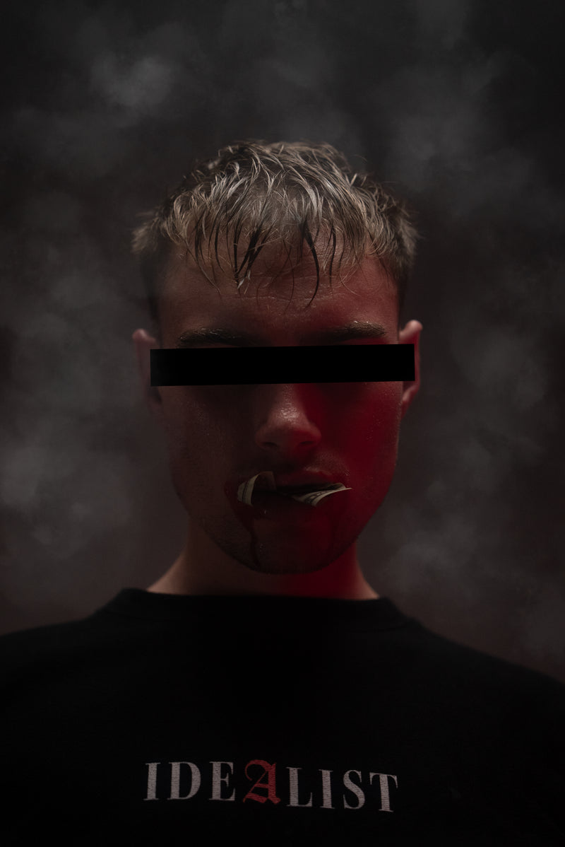 Our “Dark” line symbolizes the shadow side of ambition and idealism. It reflects the intensity and sometimes the obsession that can come with the pursuit of success. Through its starkly contrasting color scheme of black, white, and scarlet, this line explores the complexities and darker nuances of striving for more. Each design in the line features a striking scarlet statement symbol representing the inner conflict and struggle of those that battle with such a mindset.